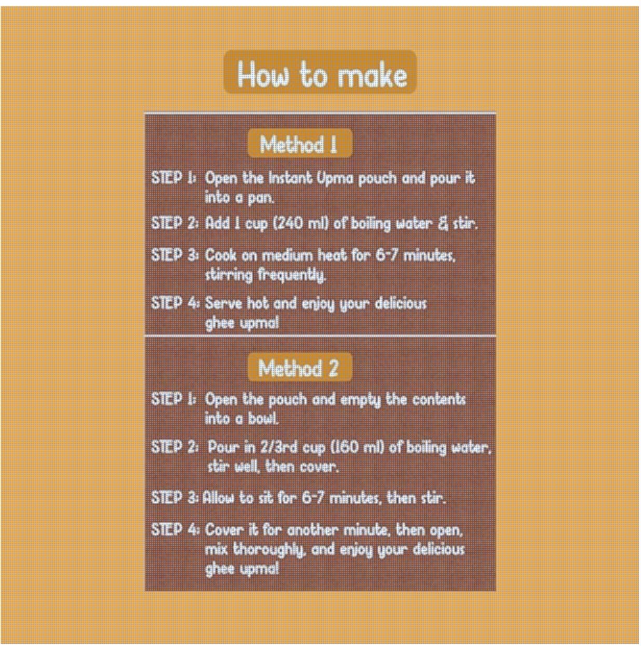 Pure & Wholesome: Our Ghee Upma is free from palm oil, preservatives, and artificial additives, supporting a healthy lifestyle.