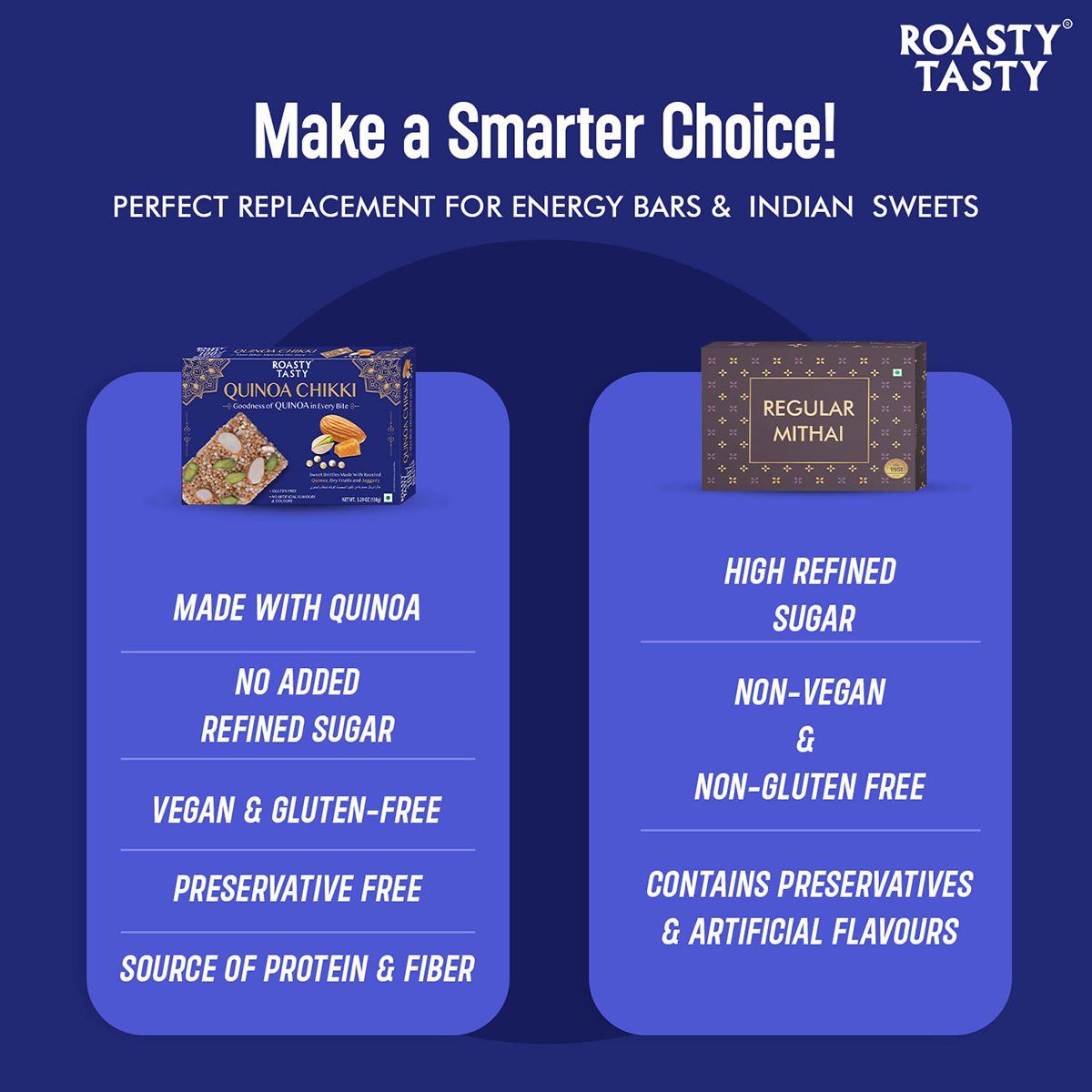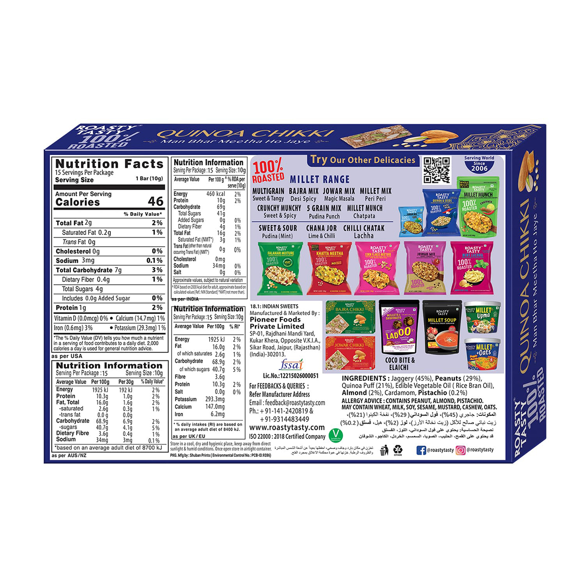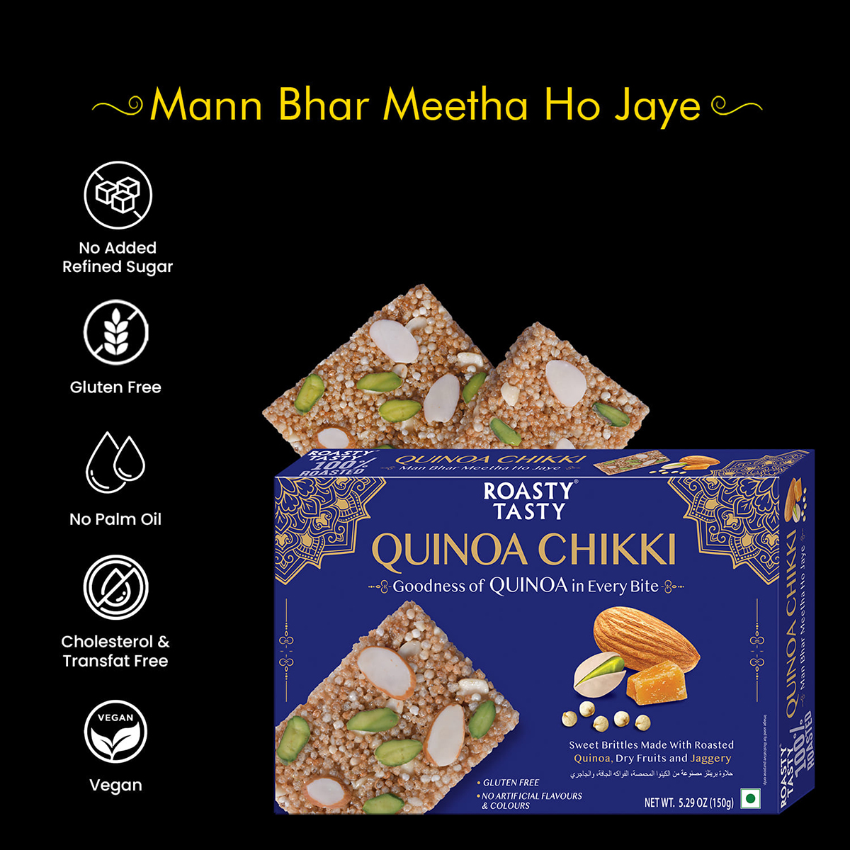 Roasty Tasty Quinoa Chikki 150 G | Quinoa Chikki Bars | Quinoa Chikki with Jaggery | Protein Snacks | No Added Sugar | Healthy Snacks | Energy Bar Replacement