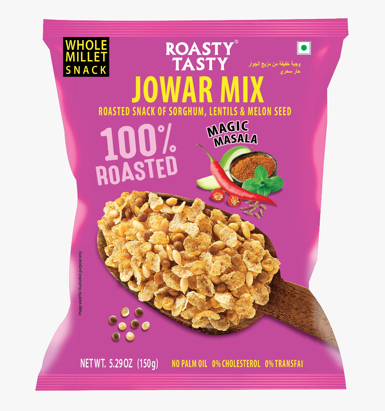 Roasty Tasty Jowar Mix Magic Masala 150G |Healthy Snack|Crunchy Millet Snack Made with Jowar Flakes & Seeds Mix|Low Calorie Snacks|Roasted Namkeen|No Trans-fat Diet Mixture in Tangy Tomato Flavour