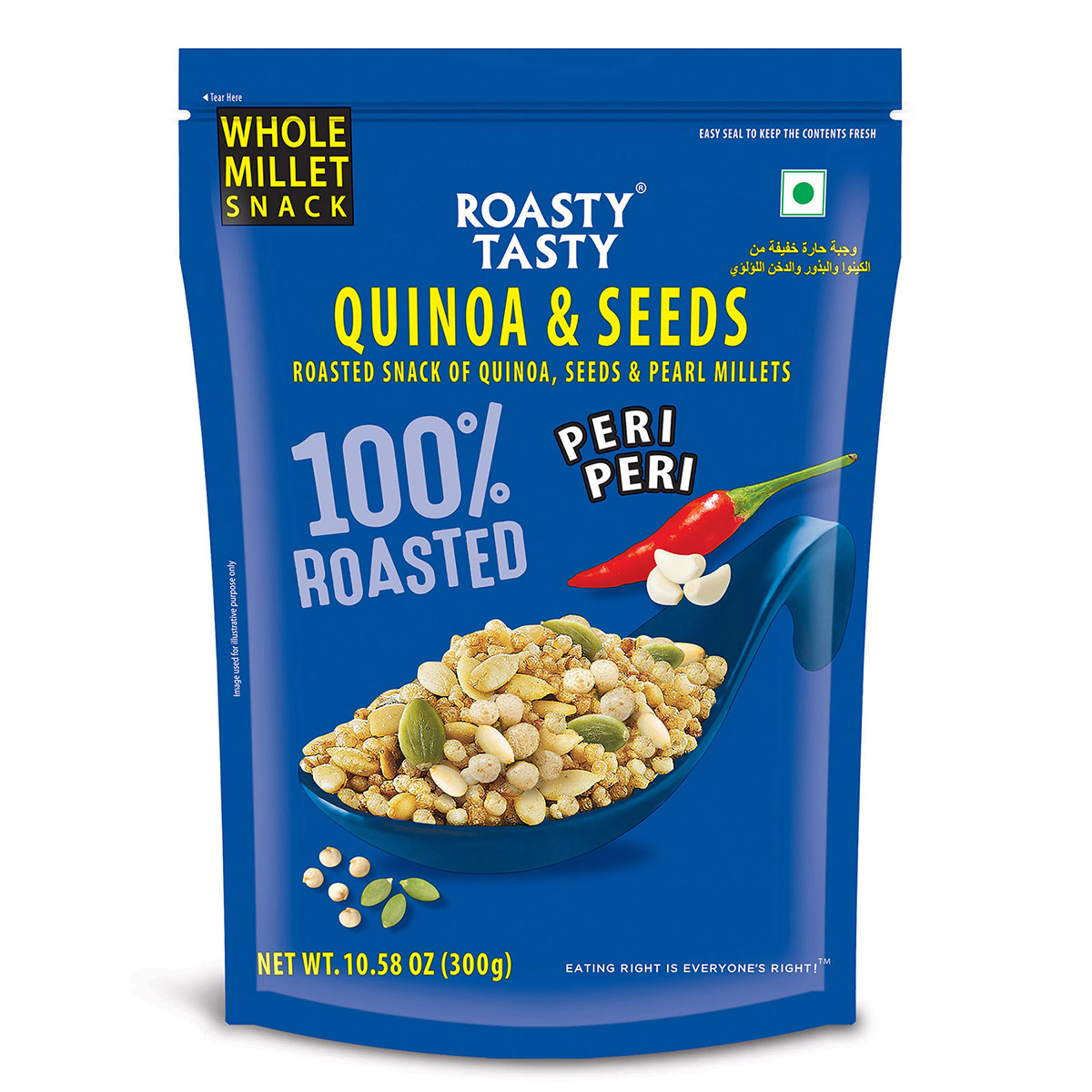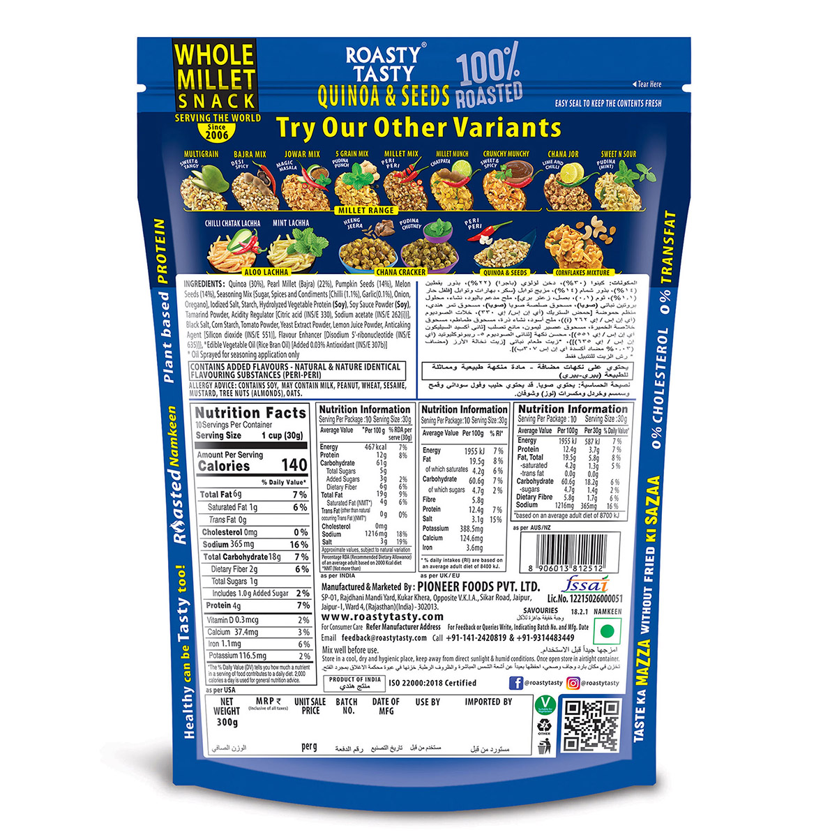 Roasty Tasty Quinoa & Seeds Peri Peri 300G | Healthy Snacks | Roasted White Quinoa Puffs, Bajra & Seeds Mix | Rich in Protein for Adults & Kids | No Cholesterol, No Transfat | Diet Mixture | Peri Peri Masala | Gluten Free | Roasted Namkeen